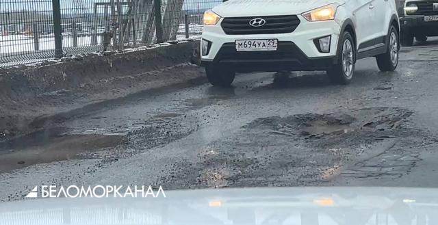 Внушительная яма на Северодвинском мосту вновь "радует" автомобилистов |