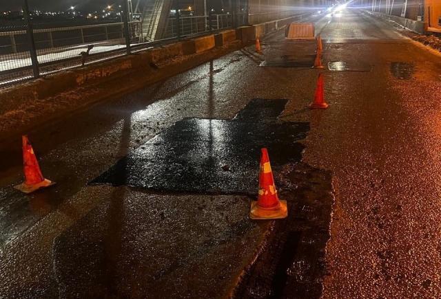На Северодвинском мосту в Архангельске ночью шаманили над ямами |
