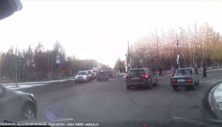 Читатель БК прислал видео с авторегистратора: «в воскресенье за три секунды дама за рулем совершила три нарушения: не пропустила помеху справа, не пропустила пешехода, не пропустила машину. Как итог – авария». |