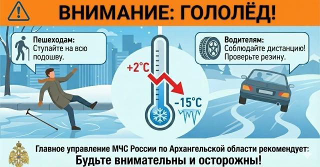 МЧС предупреждает о гололёде и гололедица на дорогах Поморья |
