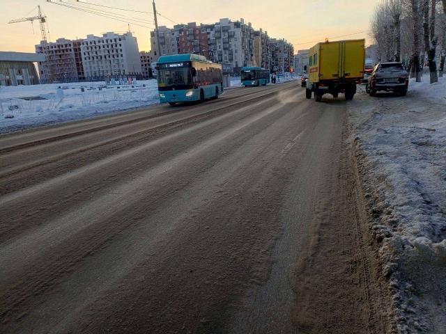 Теперь в связи с низкой температурой воздуха на проезжей части образовалась наледь.