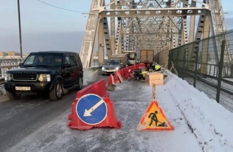 На Северодвинском мосту в Архангельске залатали яму