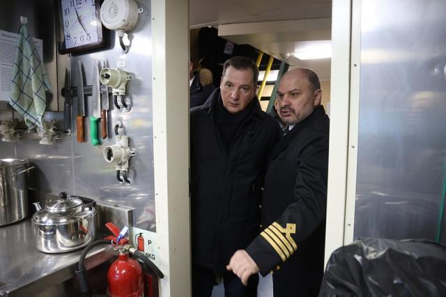 Губернатор Цыбульский в Мурманске побывал на рыболовном траулере «Кулой»