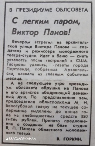 БК предлагает вниманию документ эпохи: заметку из газеты "Северный рабочий" (1991 год) о том, как принималось решение о преобразовании театра-студии и молодежный театр.