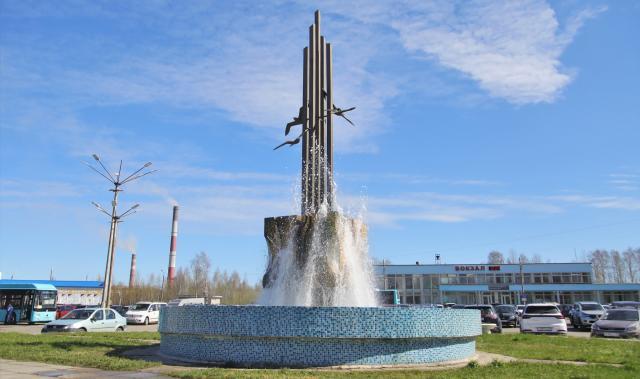 В Северодвинске запустили фонтан на Привокзальной площади