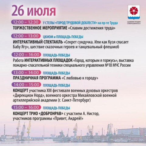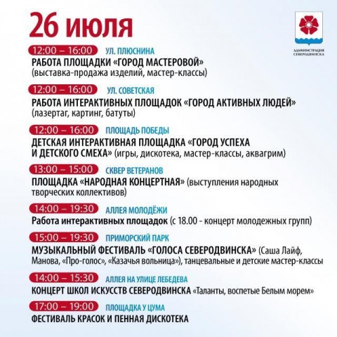 Администрация Северодвинска собрала программу празднования Дня города и Дня ВМФ в карточки-афиши. Не пропустите самое интересное.