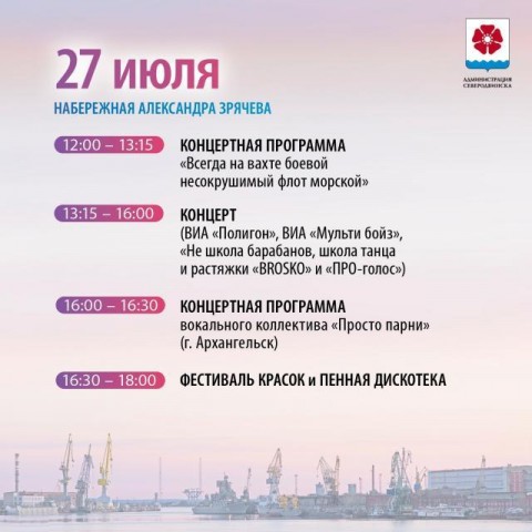 Полная программа празднования Дня города и Дня ВМФ в Северодвинске. Подарок – выступление Зары