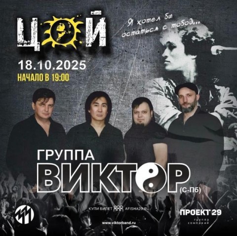 Это не просто концерт — это погружение в мир легендарной музыки, это честное и вдохновляющее исполнение песен, которые навсегда останутся в наших сердцах. Группа «Виктор» — единственные, кто так верно и проникновенно передает дух и творчество Виктора Цоя!