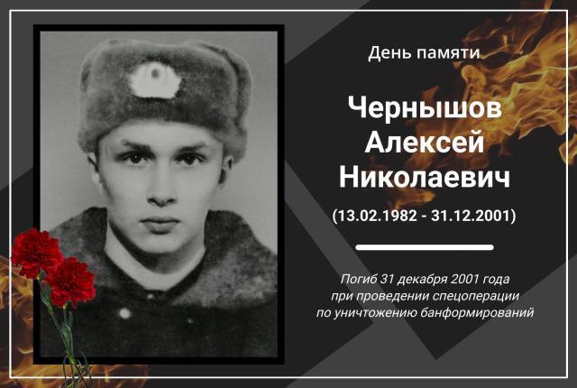 Добавим, что младший сержант Алексей Чернышов родился 13 февраля 1982 года в Северодвинске. После окончания 9 класса средней школы поступил в ПТУ, получив специальность «электромонтёр». Службу во внутренних войсках начал рядовым в архангельской воинской части. Затем был переведен в 33 бригаду оперативного назначения ВВ МВД (п. Лебяжье Ленинградской области) на должность командира расчета минометной батареи. В 2001 году назначен к новому месту службы на юг России. Указом Президента Российской Федерации награждён орденом Мужества (посмертно). Захоронен на кладбище в Северодвинске.