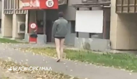 Вернее, без трусов и обуви, но в куртке и шапке. В таком виде гордой походкой он шагал сегодня по Профсоюзной.