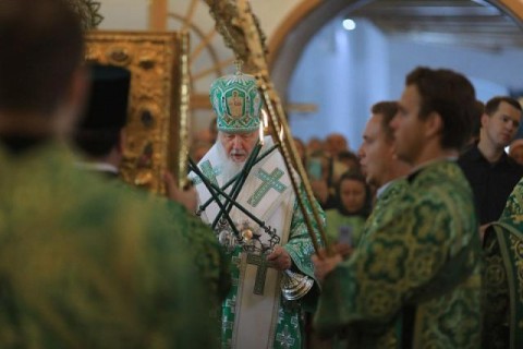 Патриарх Кирилл овершил Божественную литургию в Свято-Троицком соборе Соловецкого монастыря
