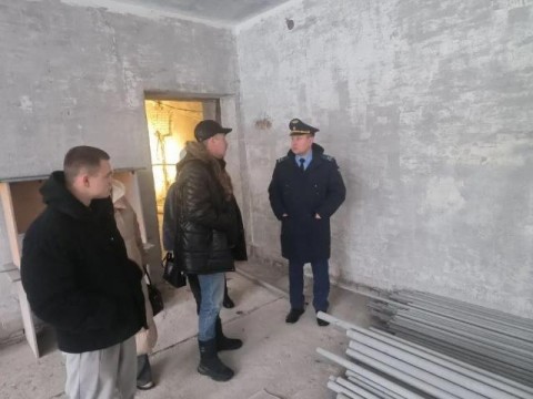 Прокурор Северодвинска Игорь Федоровцев, с участием представителей заказчика, подрядных организаций и строительного контроля, проверил ход и качество выполнения работ по капитальному ремонту здания МАОУ «Средняя общеобразовательная школа № 5» на ул. Мира, д. 23В.