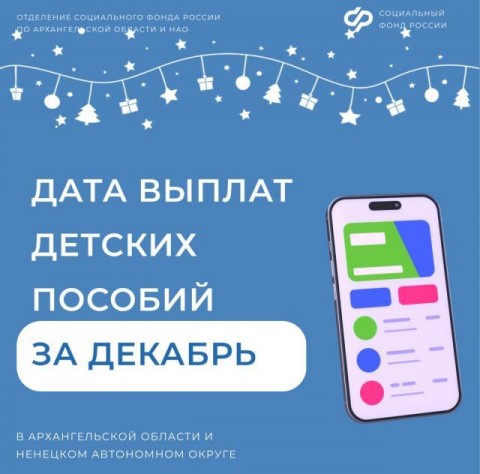 Отделение СФР по Архангельской области и НАО досрочно перечислит семьям детские пособия за декабрь перед Новым годом