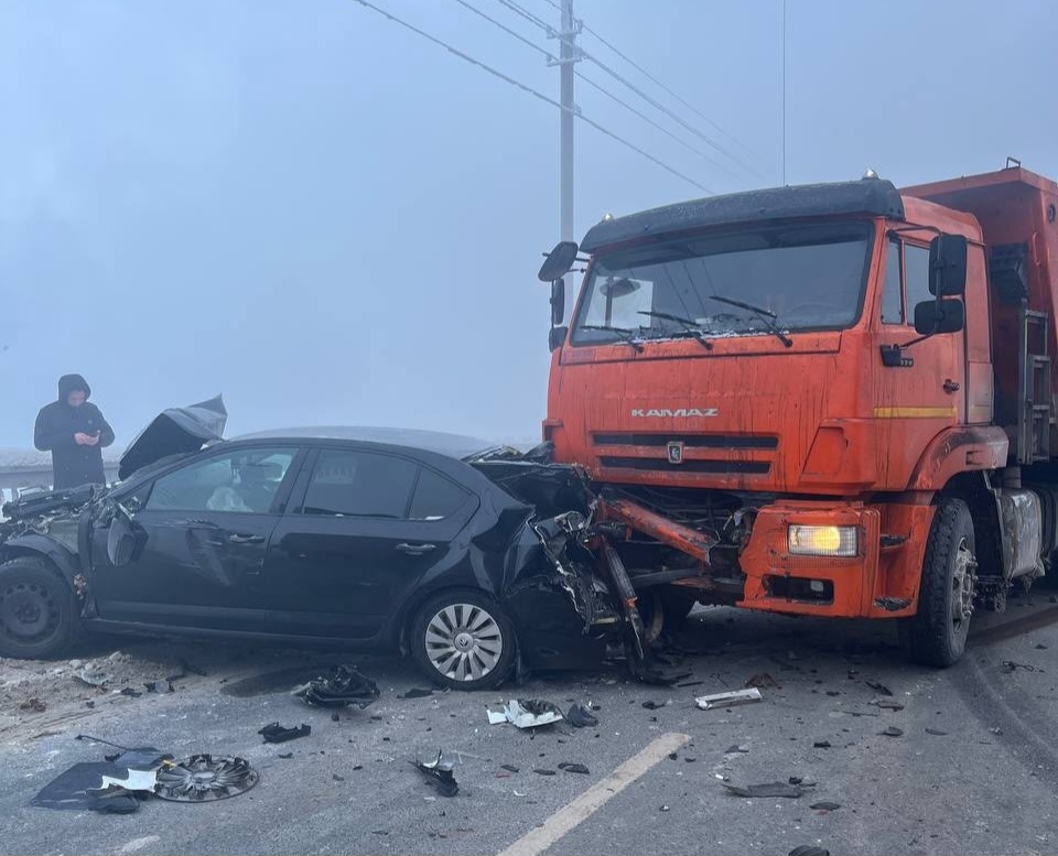 Туман, образовавшийся от трубы котельной, спровоцировал массовое ДТП на Краснофлотском мосту Архангельска |