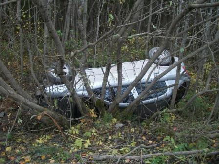В Архангельской области пьяная тетка улетела на «Калине» в кювет |