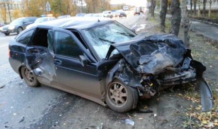 В Архангельской области на трассе М-8 после столкновения легковушки с деревом погибли двое |