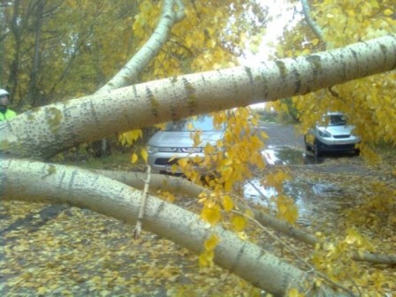 В Северодвинске на проезжую часть дороги упал тополь |