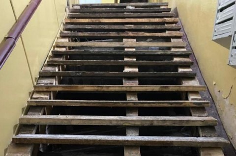 Все произошло накануне в  20.00. В многоквартирном доме по ул.Воскресенская, 116 просел первый лестничный пролет к лифту в пятом подъезде.