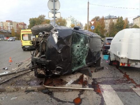 В Архангельске перевернулся автомобиль, наехавший на леерное ограждение