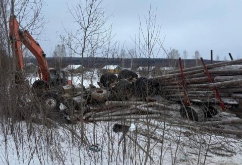 В Поморье перевернулся большегруз с пиловочником. Погиб водитель