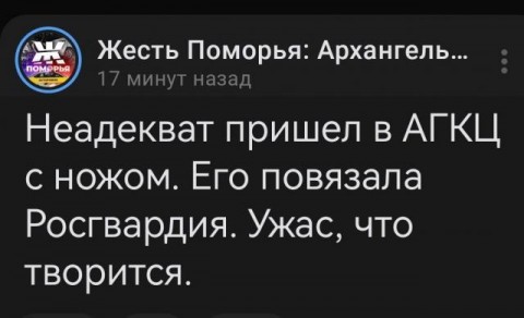 В Архангельске в АГКЦ заявился неадекват с ножом
