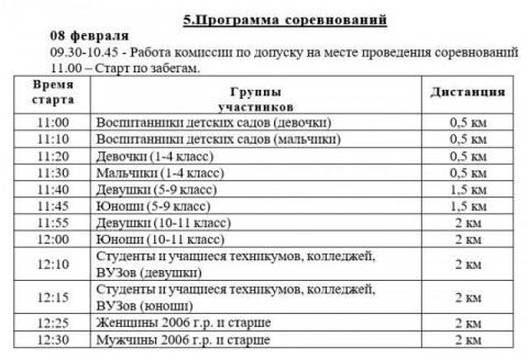 В Северодвинске гонка состоится на лыжной базе спортшколы «Строитель» на Яграх, ул. Ченслера, 19. Будут дистанции для дошкольников, школьников младшего и старшего звена, для старшеклассников, студентов. По 2 км пробегут на лыжах мужчины и женщины.