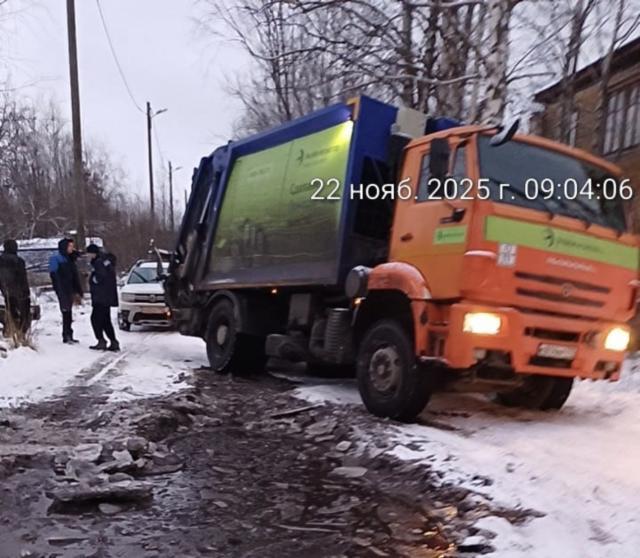 Мусоровозы буксуют из-за нерасчищенных сугробов на маршрутах Архангельской области |