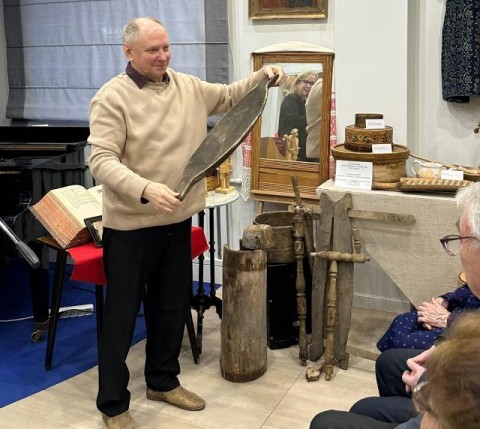 Мероприятие, посвящённое творчеству архангельских авторов, прошло 25 января в Архангельском Литературном музее. Его дополнением стала передача найденных артефактов. Предположительно, это взбивалка масла/сыра, корыто, туесок и детали ткацкого станка. Они станут частью большой коллекции музея писателей.