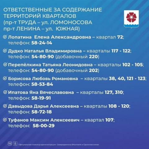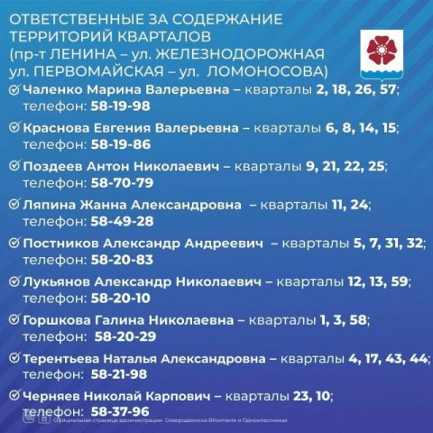 Накануне был опубликован список ягринских квартальных. Сегодня стал известен список ответственных за территории города.