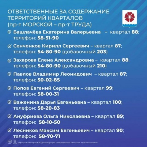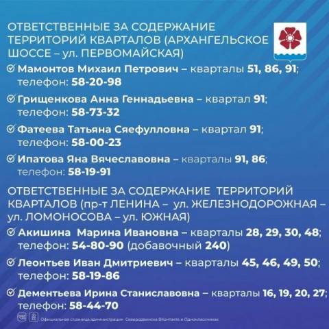 "Сегодня публикую фамилии тех, кто закреплен за районами (кварталами) материковой части города. Также указаны телефоны, по которым можно обращаться с жалобами или предложениями", - сообщил сегодня северодвинский глава Игорь Арсентьев в соцсети.