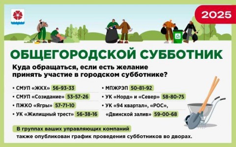 Про словам главы Северодвинска Игоря Арсентьева, "в генеральной уборке Северодвинска примут участие не только муниципальные служащие, но и коллективы образовательных учреждений и городских предприятий, управляющие компании, коммунальщики и волонтеры".