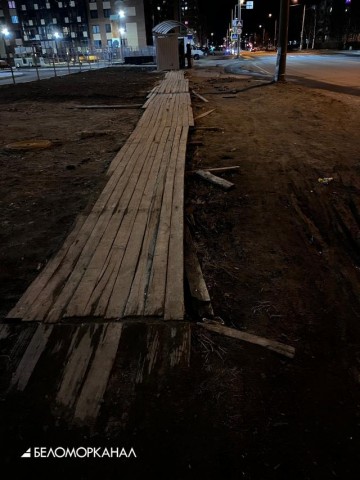 В Северодвинске по примеру Архангельска появился деревянный тротуар