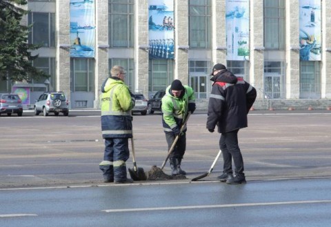 По условиям муниципальных контрактов, летние работы должны стартовать 16 апреля, однако подрядчики уже приступили к уборке с автодорог грунтовых наносов – остатков песко-соляной смеси, используемой для обработки территорий зимой.